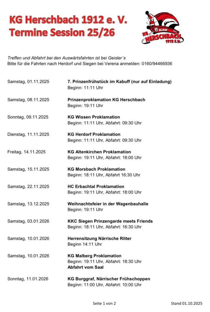 Termine der KG Herschbach 1912 e.V. in der Session 2025/2026 Veröffentlicht am 21. Oktober 202522. Oktober 2025 von Mara Brach in Allgemein